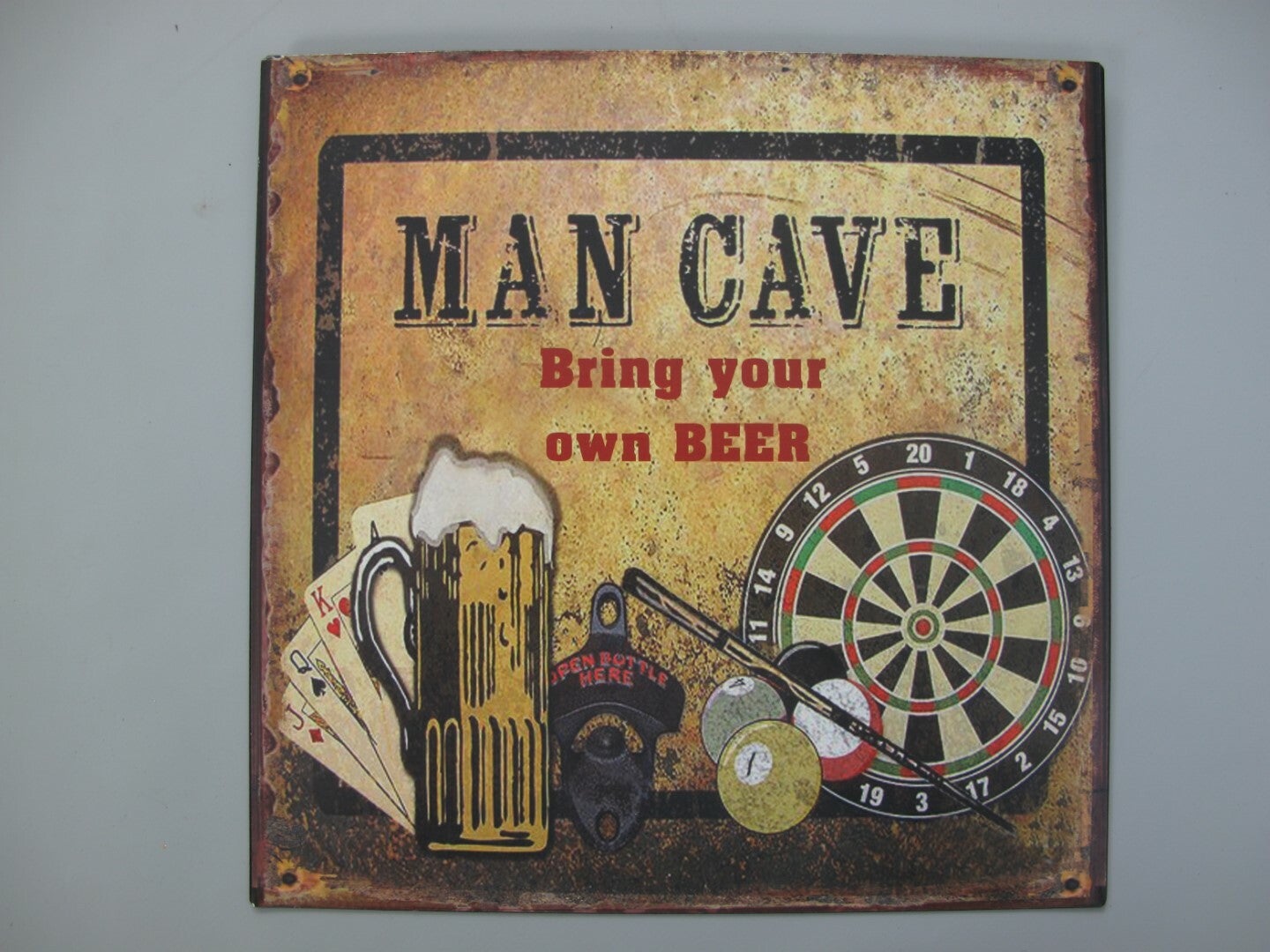 Mancave , dartbord biertje , speelkaarten , metalen wandbord
