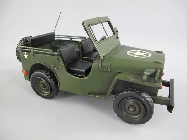Jeep legergroen ,mooie metalen jeep met de ster op de motorkap.