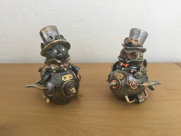 Steampunk katje leuk goudkleurig beeldje ook te verkrijgen in een uiltje.
