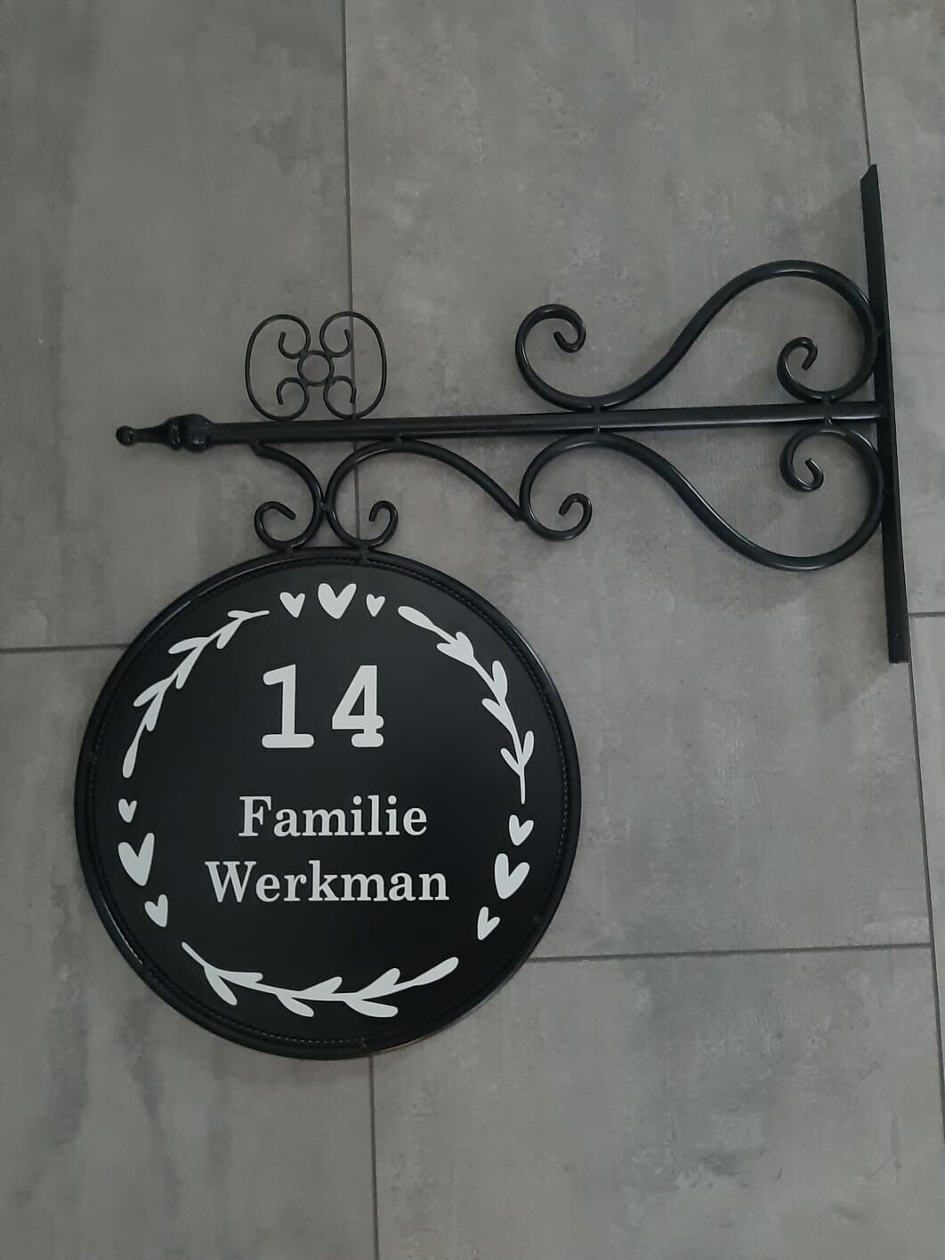 Deur , hangbord om u eigen naam erop te zetten kleur zwart metaal