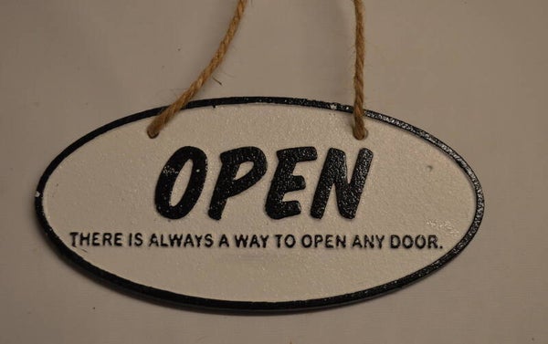 Closed-Open dubbelzijdig gietijzeren wandbordje .